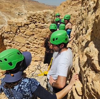 רתמנו רתמות, חבשנו קסדות והתיישבנו לתדריך בטיחות. אבטחנו את הטלפונים, התגברנו על פחד גבהים קל ויצאנו אל מחוץ לחומת מצדה לביקור במכלולים ארכאולוגיים נסתרים, שהיו עד היום ללא גישה, עקב מיקומם המאתגר. לאורך המסלול נהננו מנוף מרהיב המתחיל במבט מערבה למדבר יהודה ומסתיים עם הפנים מזרחה מעל ים המלח.